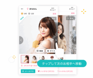 画面右に設置してある「>」ボタンをタップするだけで、次の人のプロフィール画面に切り替わります。